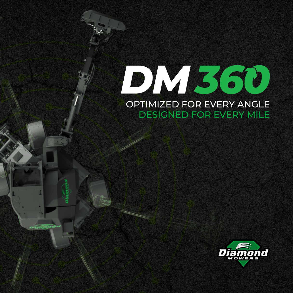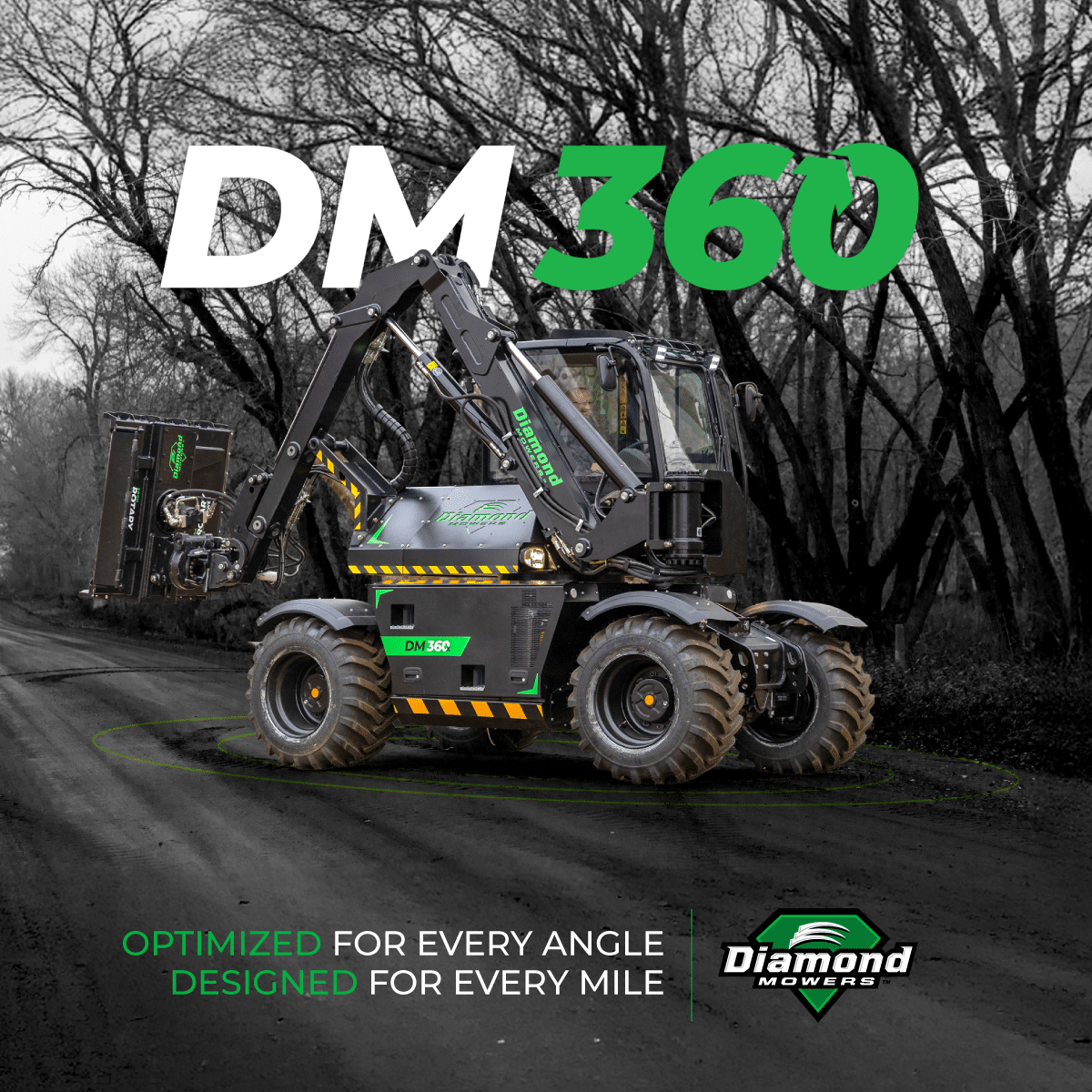 Copy: Introducing the DM 360: the all-new municipal maintenance machine. Ready to tackle all seasons, at all angles. From boom mowing to snow removal, increase asset utilization with this powerhouse platform. Learn more today at: [either dealer link or Diamond link to DM 360 page]